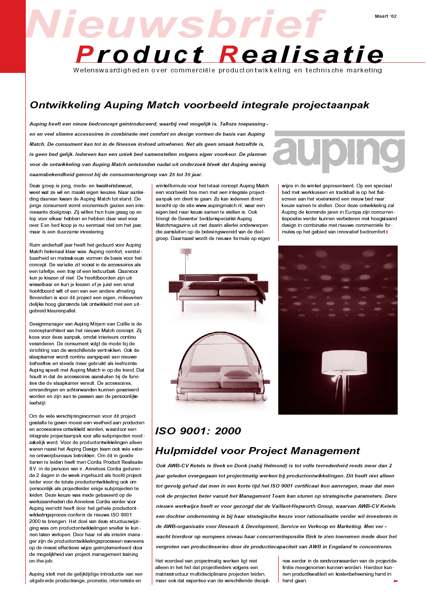 Auping Match Bed Concept; Development from Idea to Introduction, involving five internal project managers, around ten external design agencies and many manufacturing suppliers